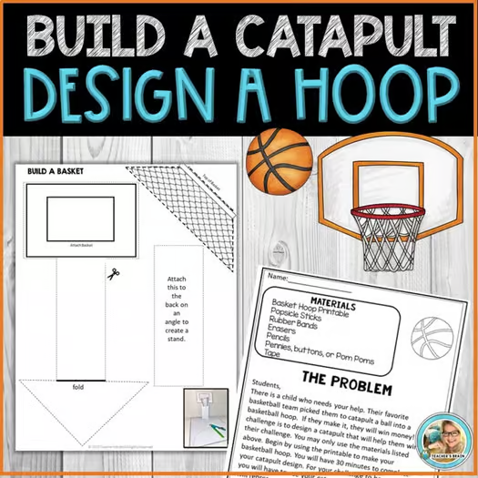 March Madness is the perfect time to bring some basketball-themed STEM fun into the classroom! Students will design and build a popsicle stick catapult to launch a small object into a target (like a paper cup or a drawn basketball hoop). They’ll experiment with angles, force, and accuracy to improve their designs. This challenge is engaging and teaches essential physics concepts. Grab the full activity here.