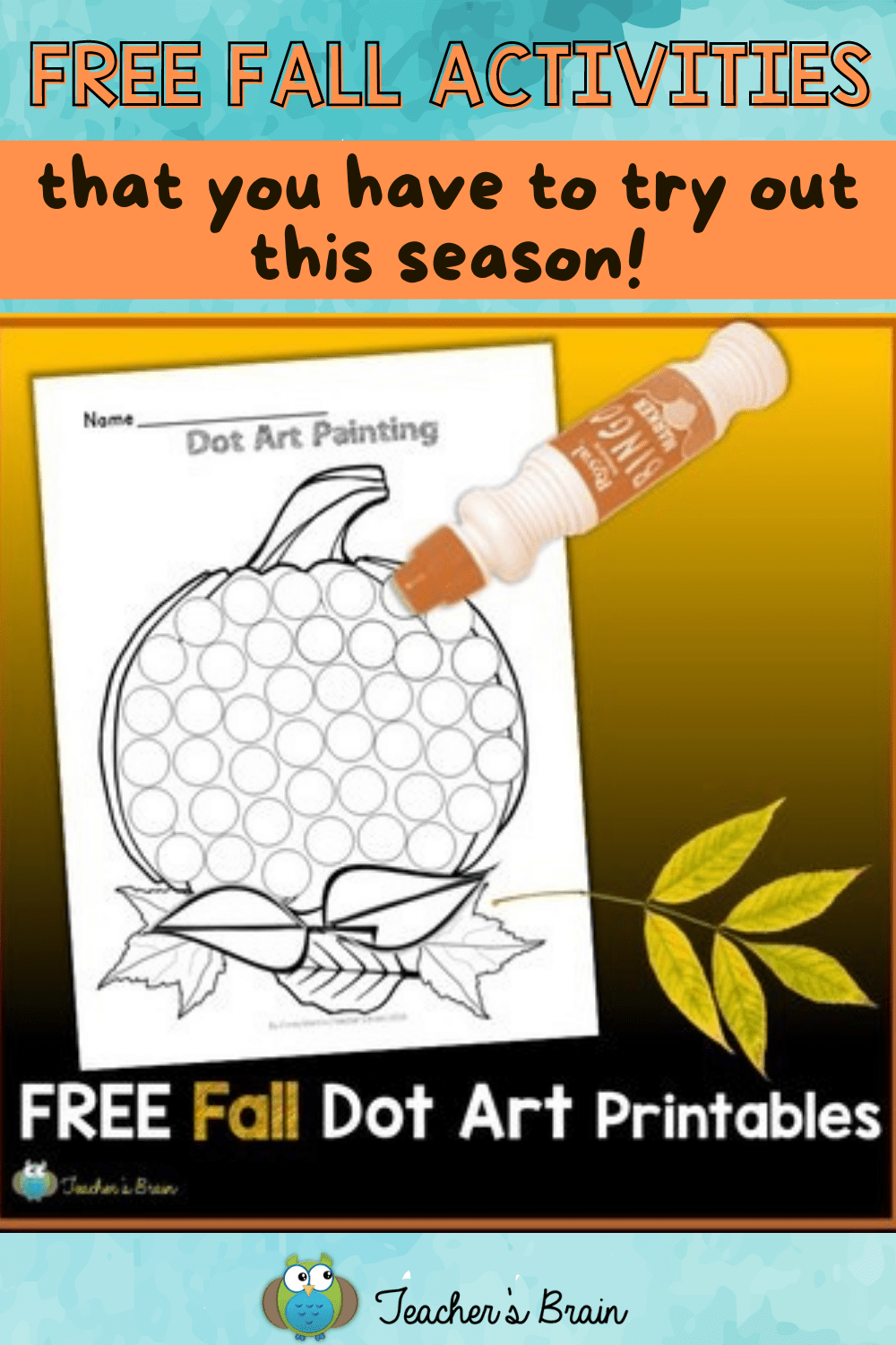 The first activity is this Pumpkin Dot Art printable resource. Students can let their creativity flow by decorating their pumpkins in whatever colors they like. This makes a great brain break during the fall months!