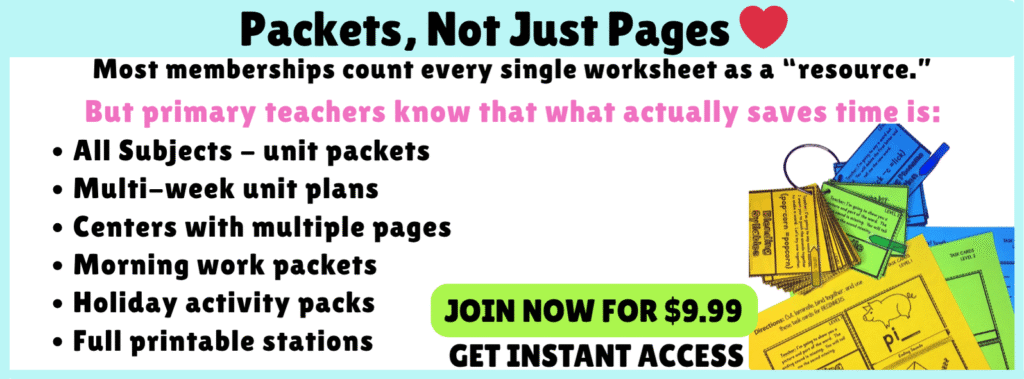 With TIME, you’ll save hours every week with ready-to-use centers, crafts, worksheets, task boxes, games, and sub plans — all designed by experienced K–3 teachers.
