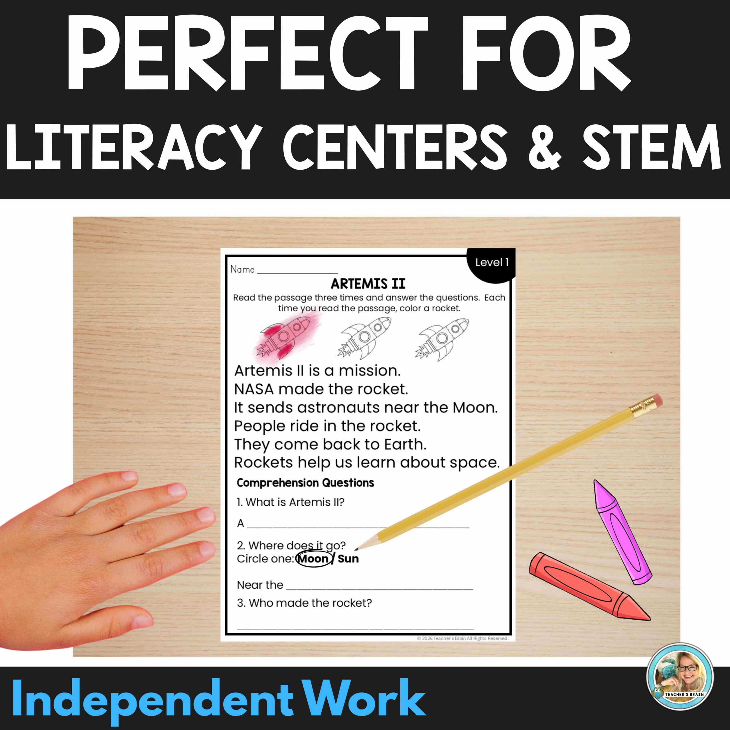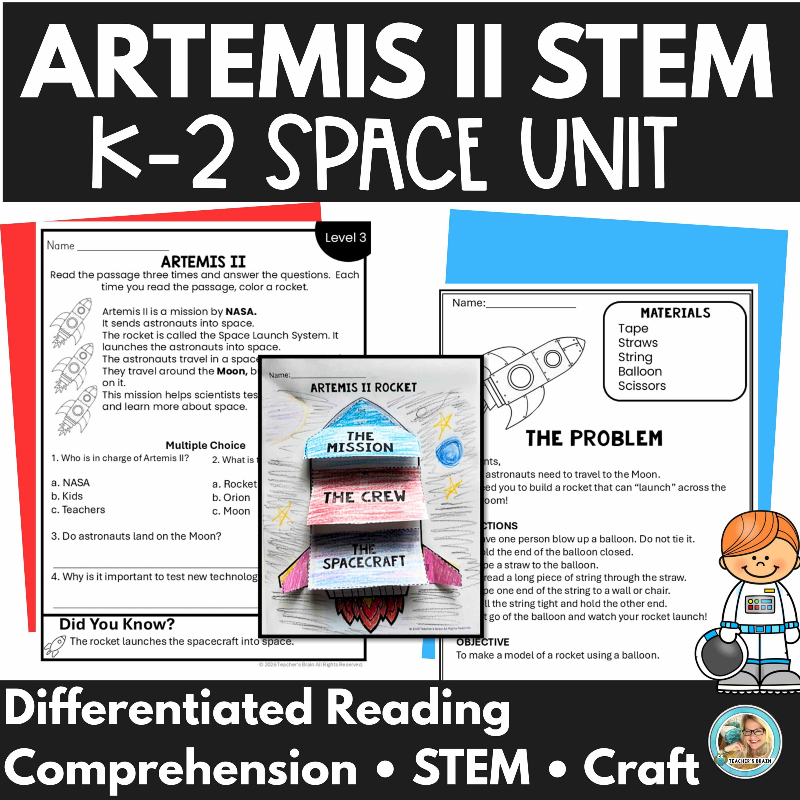 Engage your students with this exciting Artemis II STEM Unit designed for K–2 learners! This low-prep resource combines science, reading, and hands-on learning to help students explore space while building essential skills. Perfect for your space unit, STEM lessons, or literacy centers, this resource makes learning about rockets and space both meaningful and fun!