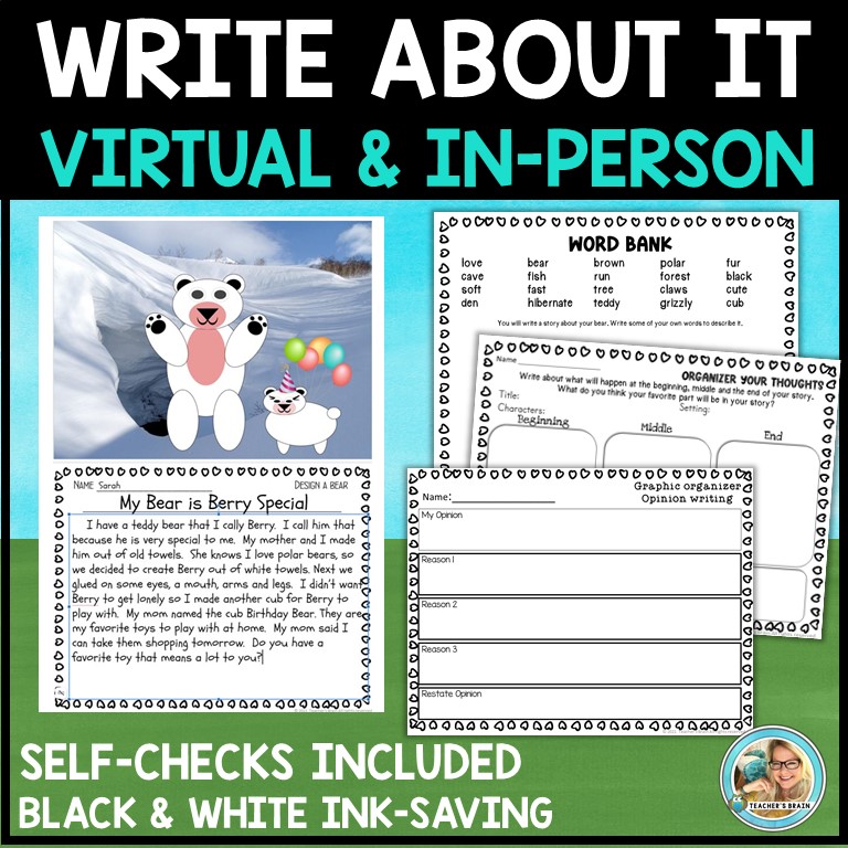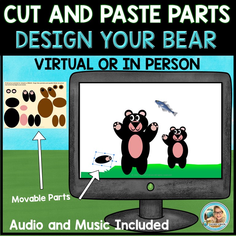 Are you looking for a great way to do an engaging virtual OR in-person WRITING lesson with students? I have you covered with these interactive, editable Google Slides to easily have students copy and paste movable parts to DESIGN their own BEAR digital (or in-person). Then, students will write a narrative, persuasive, or opinion paper about their bear.