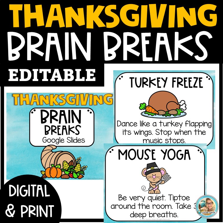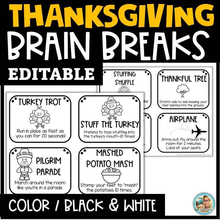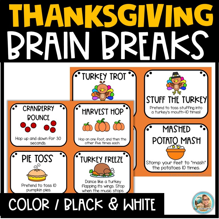 This is my favorite collection of 32 different Thanksgiving-themed Brain Breaks. These task cards can be used as transitions, breaks during an activity, something to raise or lower the energy of the group, team-building activities, and so much more!