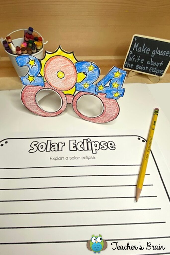 These 2024 “SUN” glasses are fun for a solar celebration. Kids can wear them while writing, work on fine motor skills, or use them just for fun!