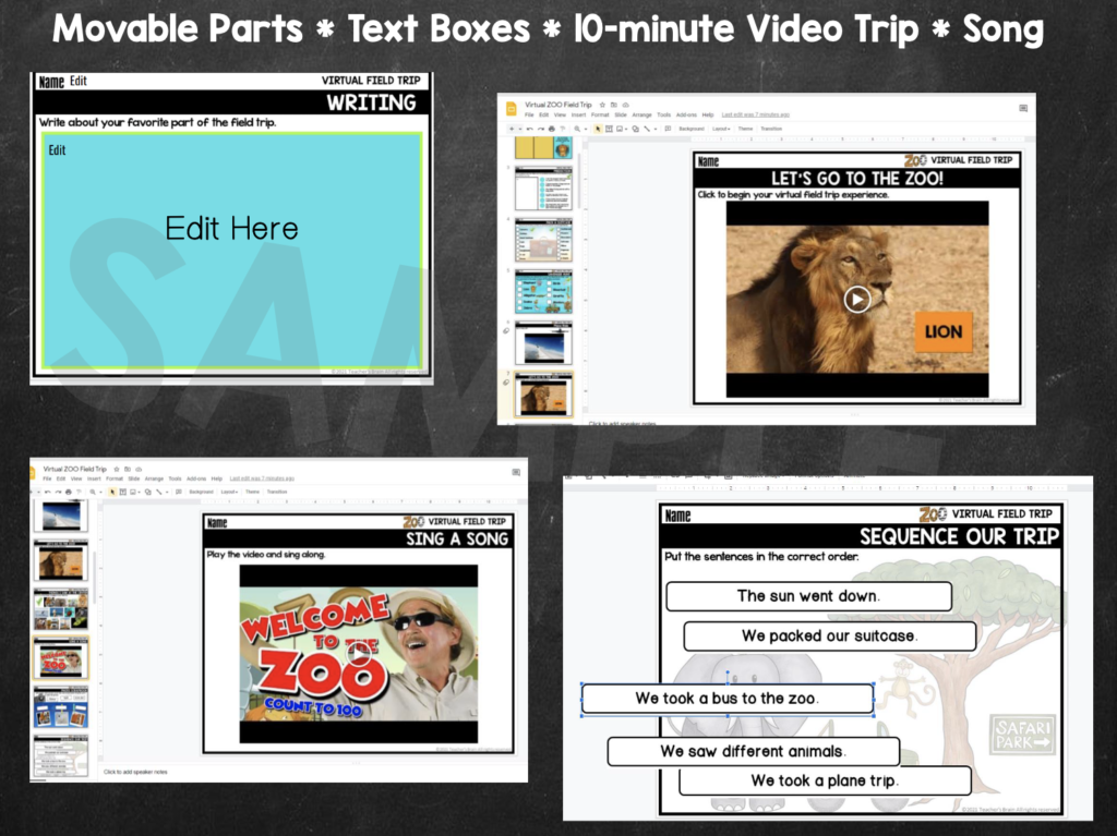 Use these interactive, editable Google Slides to easily have students copy and paste movable parts, learn about zoo animals, facts, what to bring on a trip and so much more!
